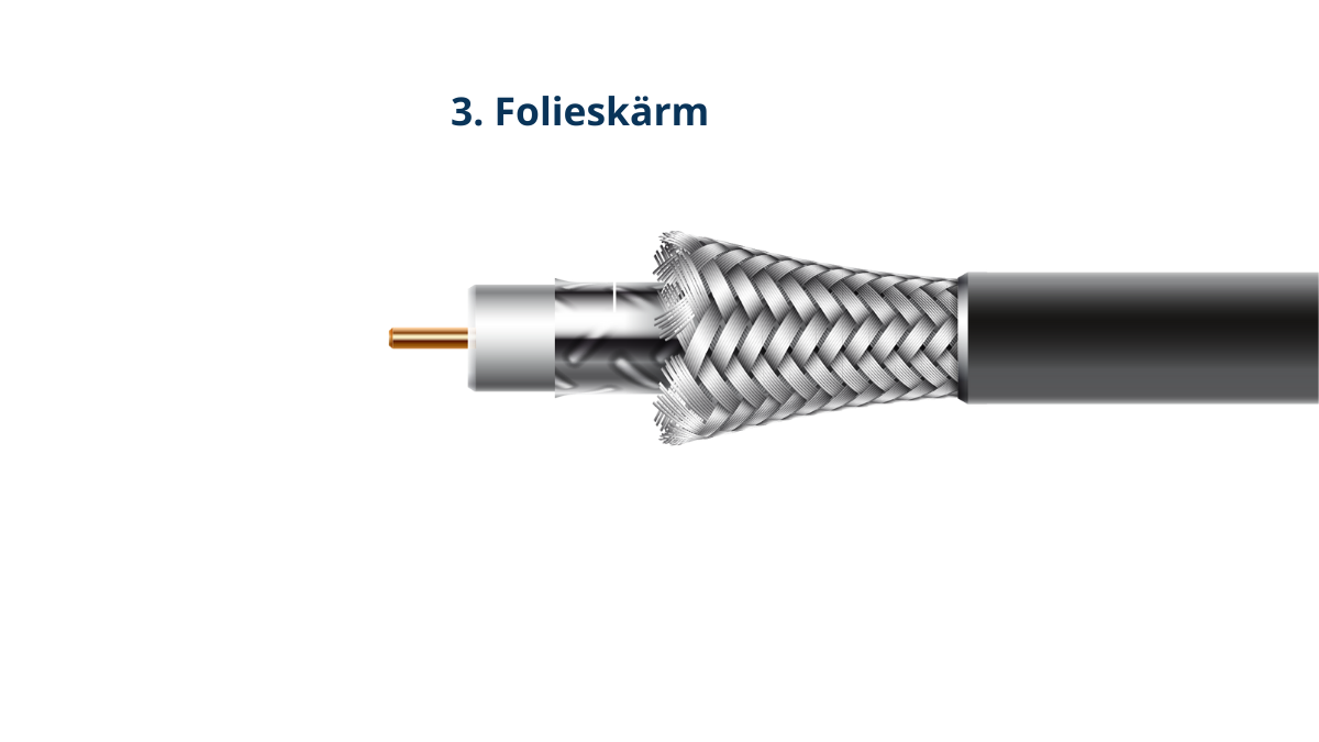 Folieskärmen samverkar med den flätade skärmen för att ge ytterligare skydd mot EMI. Denna dubbla skärmning är särskilt viktig i miljöer med hög densitet av störningar från andra elektroniska enheter. Folieskärmen hjälper till att bibehålla signalens integritet, vilket bidrar till kommunikationssystemets övergripande effektivitet.