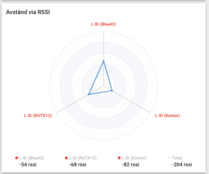Vid sidan av huvudprojektet byggde de också en lösning för grov positionsbestämning med hjälp av Bluetooth. Genom en USB-dongel från BlueIO kunde de läsa av RSSI-värden (signalstyrka) från flera sensorer, bryta ner rådata och skicka värdena till Mydevices.cloud. Med hjälp av flera gateways genomförde de en enkel form av triangulering.