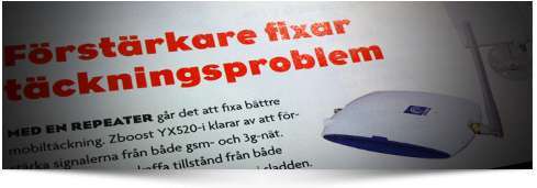 I det senaste numret at Telekomidag var det ett införande med YX520i GSM och 3G förstärkare. ”Med en repeater går det att fixa bättre mobiltäckning” skriver tidningen i nummer 6, 2011.