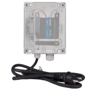 IoT-Ready Teltonika RUT200 levereras i en slitstark polykarbonatkapsling med IP65-klassning. Detta innebär att enheten är skyddad mot damm och vattenstrålar, vilket gör den optimal för utomhusbruk och industriella installationer. Routern är färdiginstallerad på en DIN-skena, och ett integrerat nätaggregat säkerställer stabil strömförsörjning.