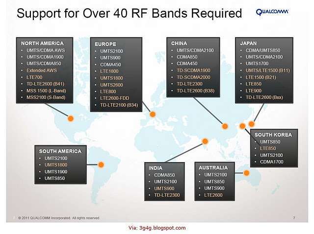 För att få tillgång till all världens 4G nät kommer 4G-enheter att behöva ha 40 olika frekvensband för att vara världstäckande.