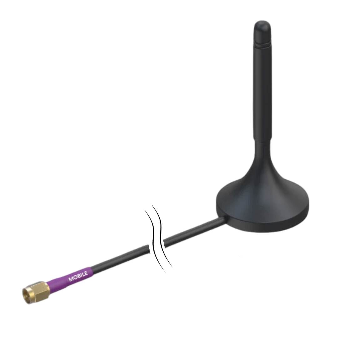 Enkel och smidig magnetfotsantenn med 3 meter kabel, för IoT, 4G och 5G (endast de låga 5G-frekvenserna). GMA02 täcker många frekvensband men är både kompakt och sitter stadigt. Utrymmesbesparande design med SMA-hankontakt och 1 dBi antennvinst. En kvalitetsmagnetfotsantenn till pressat pris som passar med de allra flesta routrar, modem osv!
