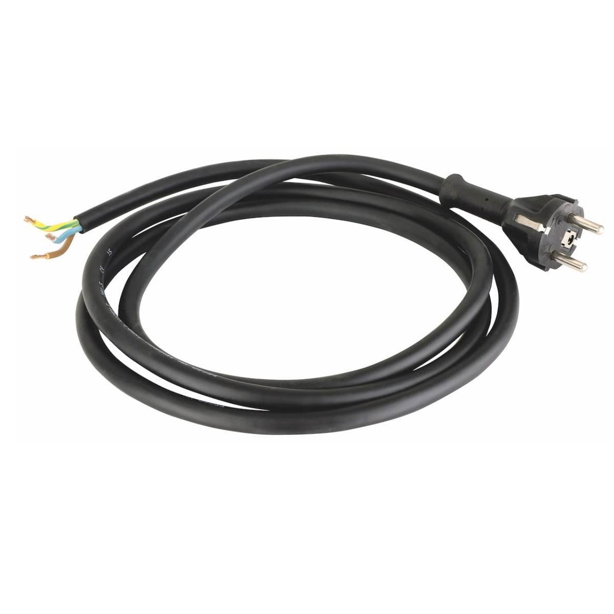 Sladdstället är tillverkat av slitstarkt gummi, denna 2 meter långa kabel erbjuder utmärkt tålighet mot både yttre påverkan och dagligt slitage. Kabeln har en stickpropp på ena sidan och dess tre ledare har öppen ända på den andra, redo att anslutas till din specifika enhet eller anläggning. Med en vikt på endast 0,29 kg är den enkel att hantera, samtidigt som den håller för robusta miljöer.