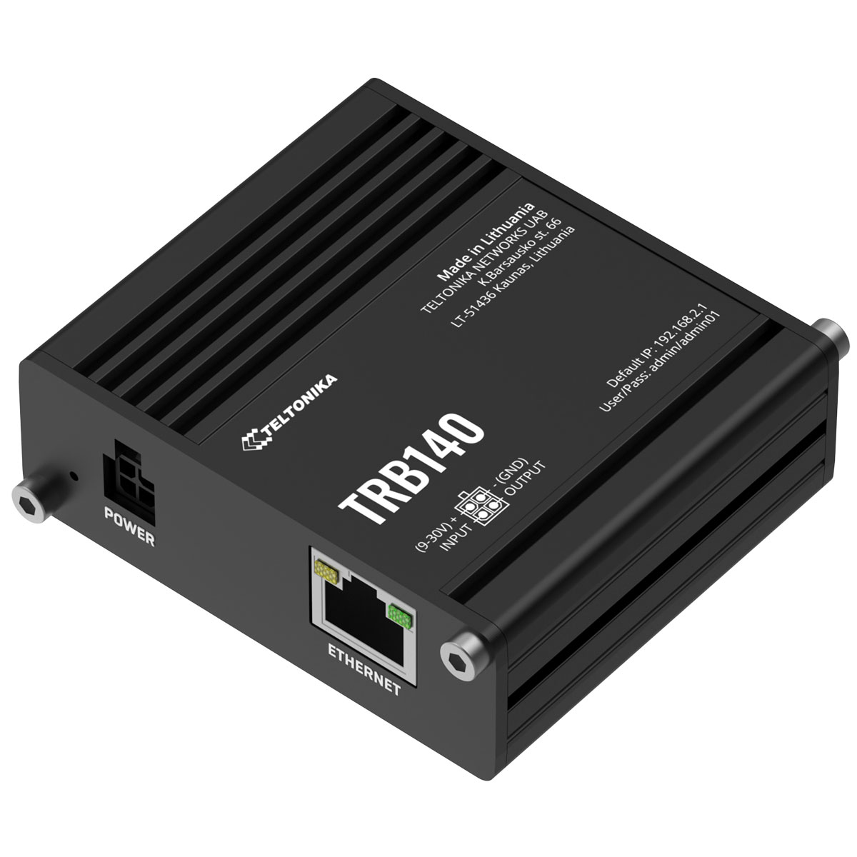 TRB140 är en ultrakompakt, lätt och energieffektiv industriell gateway utrustad med 4G-modul med LTE Cat 4-funktioner. Den har ett Gigabit Ethernet-gränssnitt, digital ingång/utgång och mikro-USB-port.TRB140 har en stycken Ethernet-port (10/100/1000 Mbit/s) för uppkoppling av en enhet. TRB140 är produkten du använder för integration med annan utrustning när du behöver kompakta yttermått och stabil uppkoppling. TRB140s micro-USB port kan användas som en virtuell nätverksport eller användas för konfiguration av enheten, när den ansluts till en dator installerar TRB140 drivrutinerna själv.