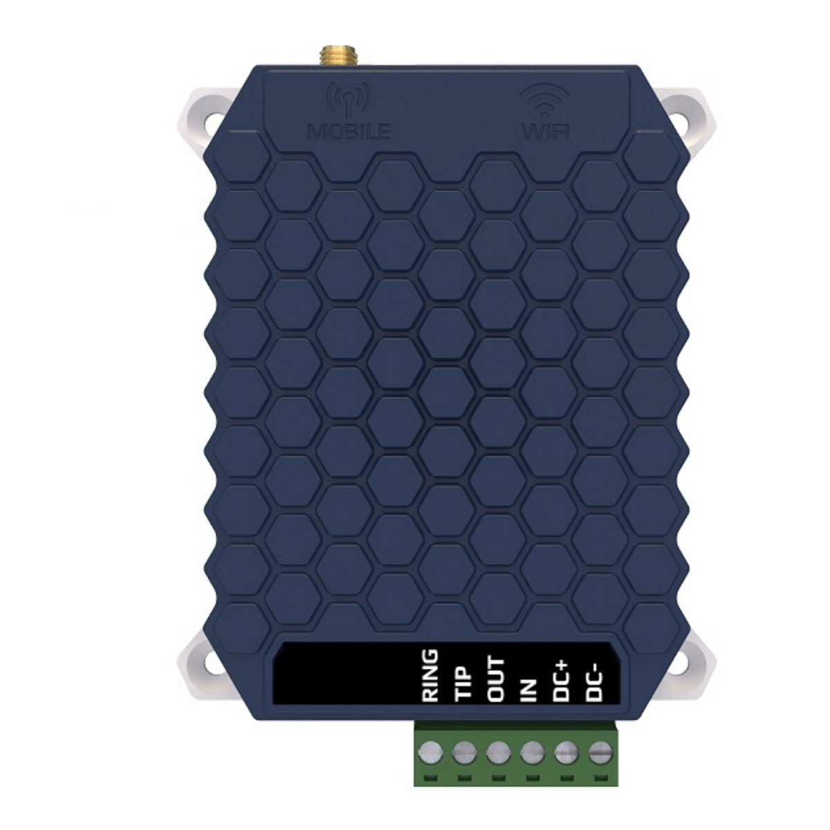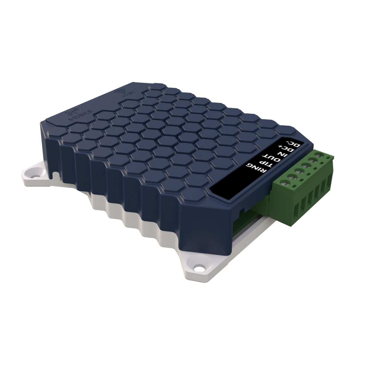 Enheten spänningsmatas med 9-30 VDC och telefonlinjen ansluts till TIP/RING. Ingen programmering behövs.