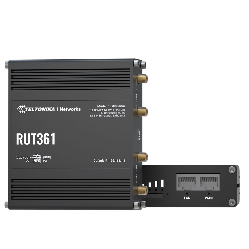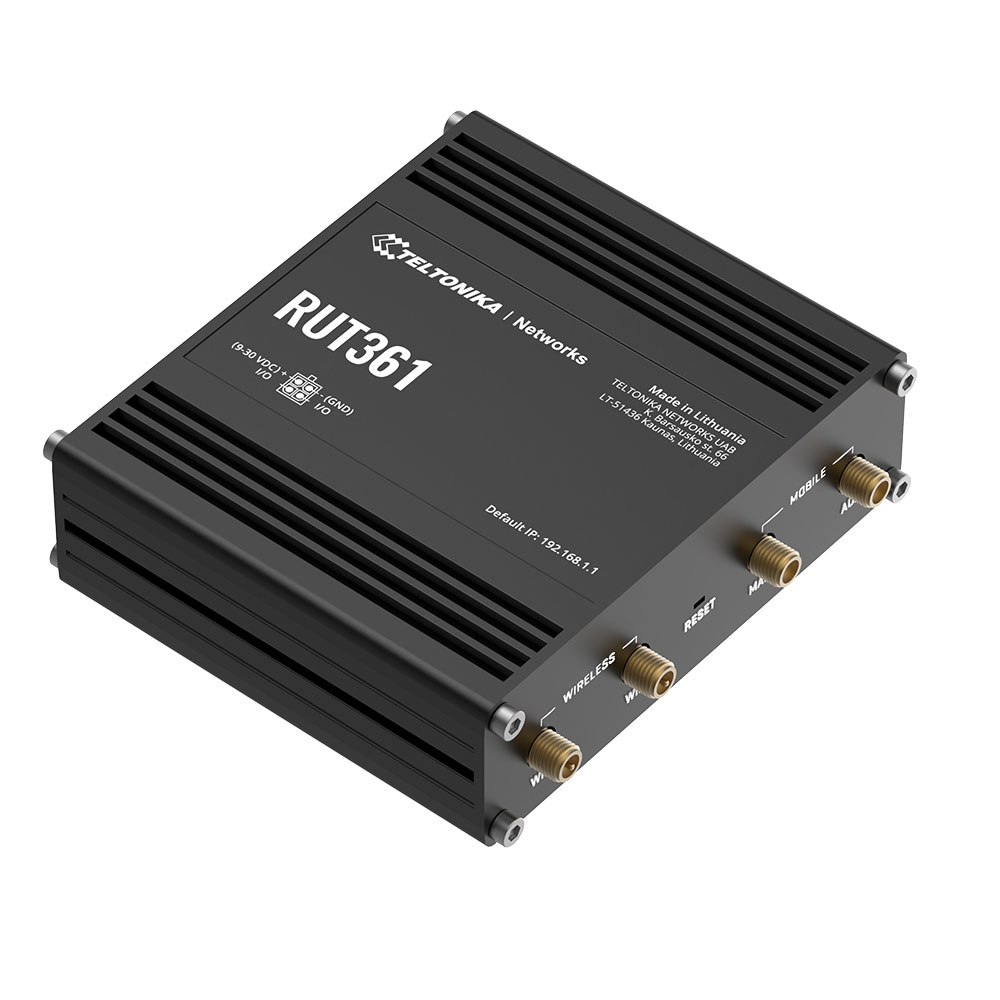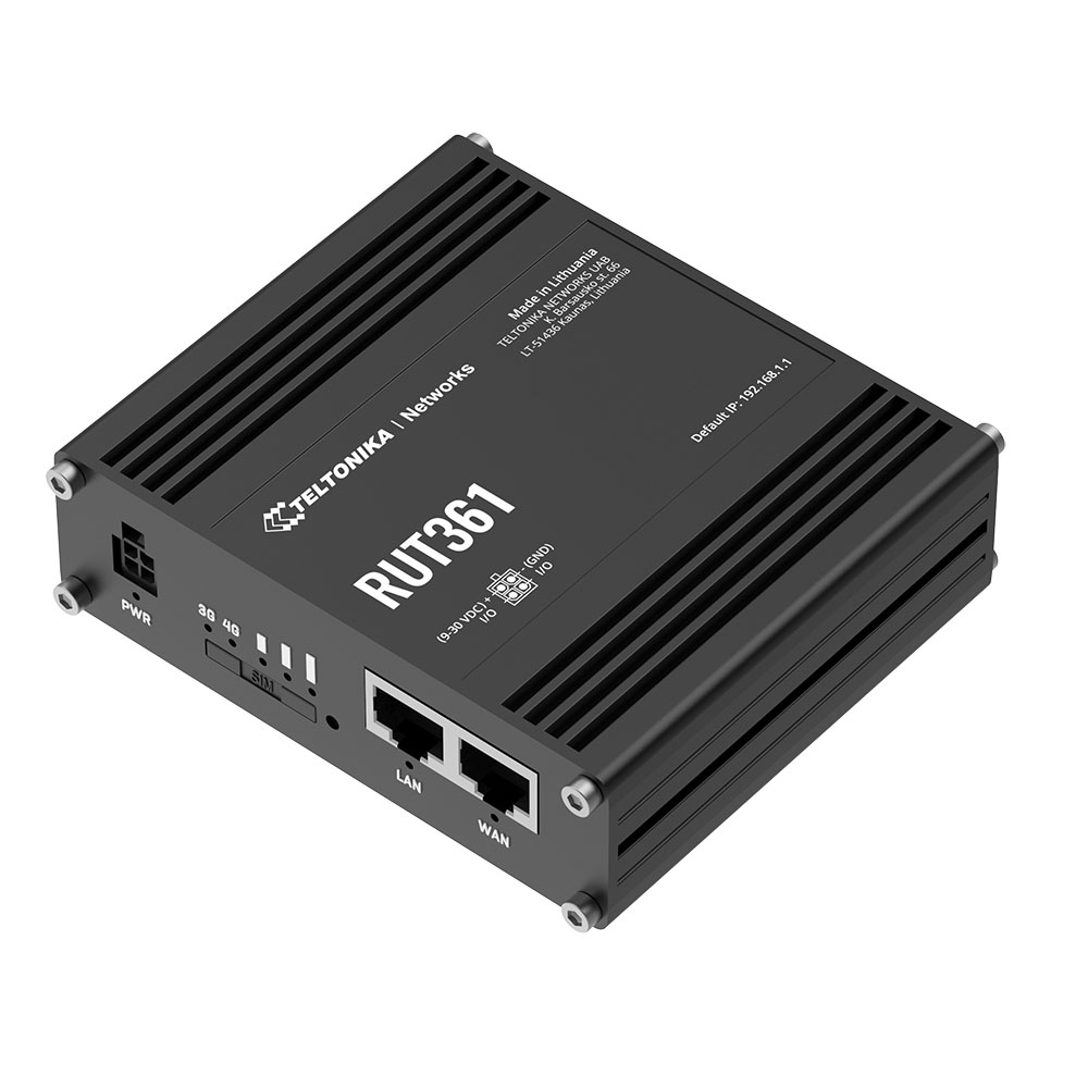 Teltonika RUT361 är en 4G-router med grundläggande egenskaper. Routern hanterar säker uppkoppling via VPN. Den är kompakt och har en WAN-port och en LAN-port, eller två nätverksportar. En kompakt router som kan monteras på DIN-skena.