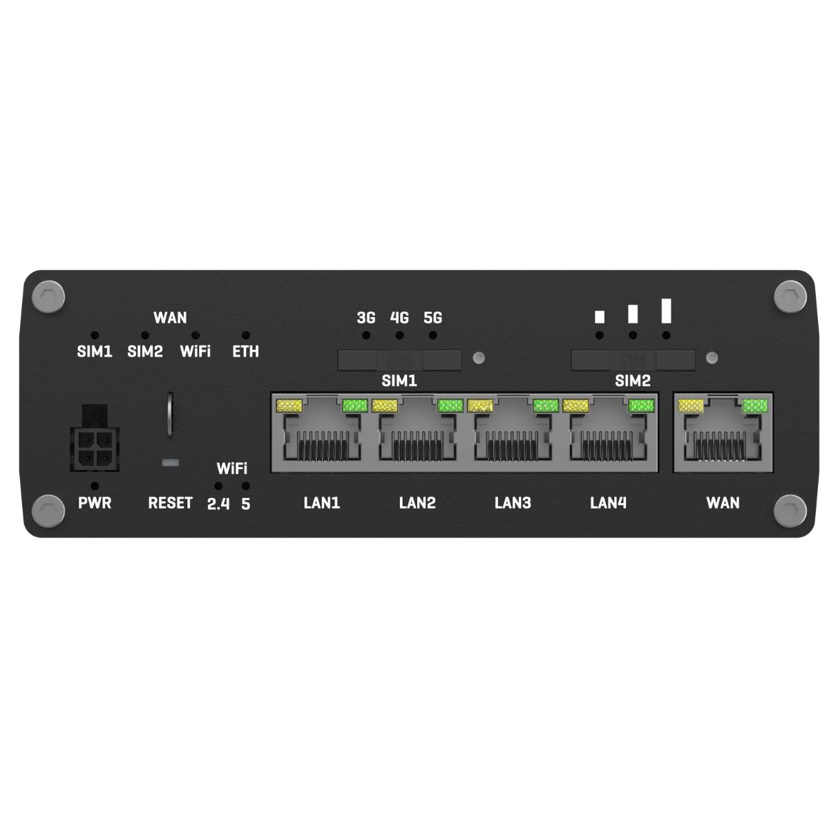 RUTX50 är en kraftfull router med 5G-teknik. Den är förberedd för höga hastigheter via mobilnäten med upp till 3,3 Gbit/s. Routern har stöd för både SA och NSA-teknik för att utnyttja den fulla kraften i 5G-infrastrukturen. 5 stycken Gigabit Ethernet-portar, kraftfull WiFi, GPS och kraftfulla säkerhetsfunktioner gör den här enheten väl lämpad för applikationer där anslutningens prestanda räknas.