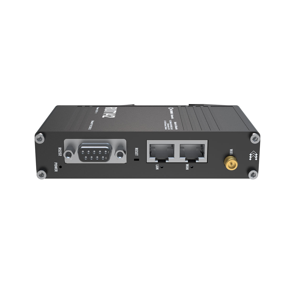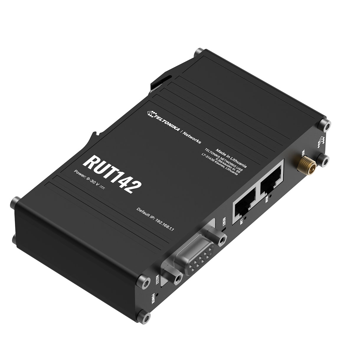 RUT142 är en router tillverkad och utvecklad i EU, en router utformad för att fungera som primär anslutning till internet, eller fungera som backup-anslutning till fast internet. Routerns två Ethernet-portar stöder dynamisk och statisk routing medan den inbyggda RS232-porten förenklar integrationen med befintliga industriella system. Av de två nätverksportarna kan en port användas som antingen LAN- eller WAN-port.