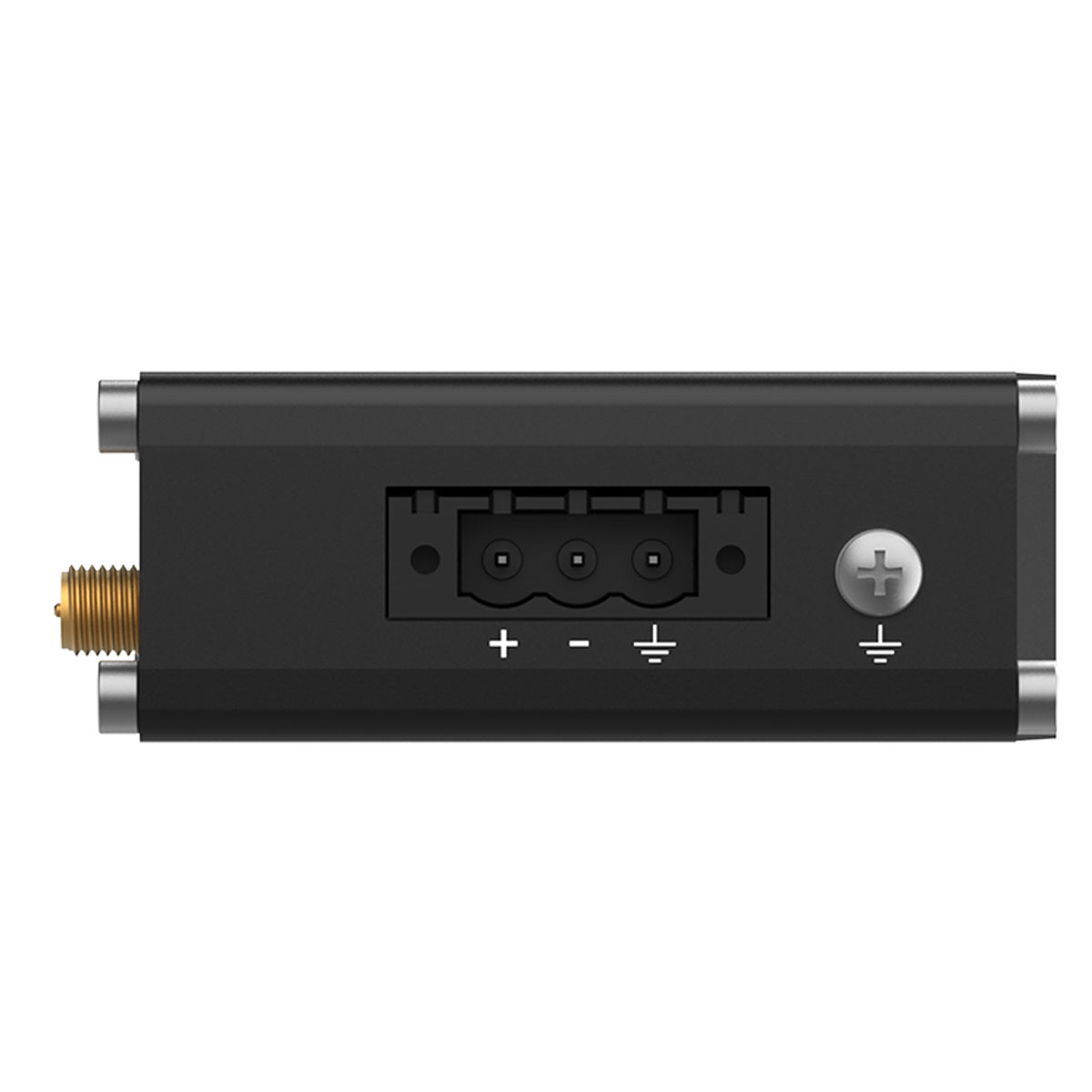 Routern har ett brett inspänningsområde (9–30 VDC) och matas via den medföljande 3-poliga plinten (nätaggregat beställs separat) eller via passiv PoE på LAN-port 1.