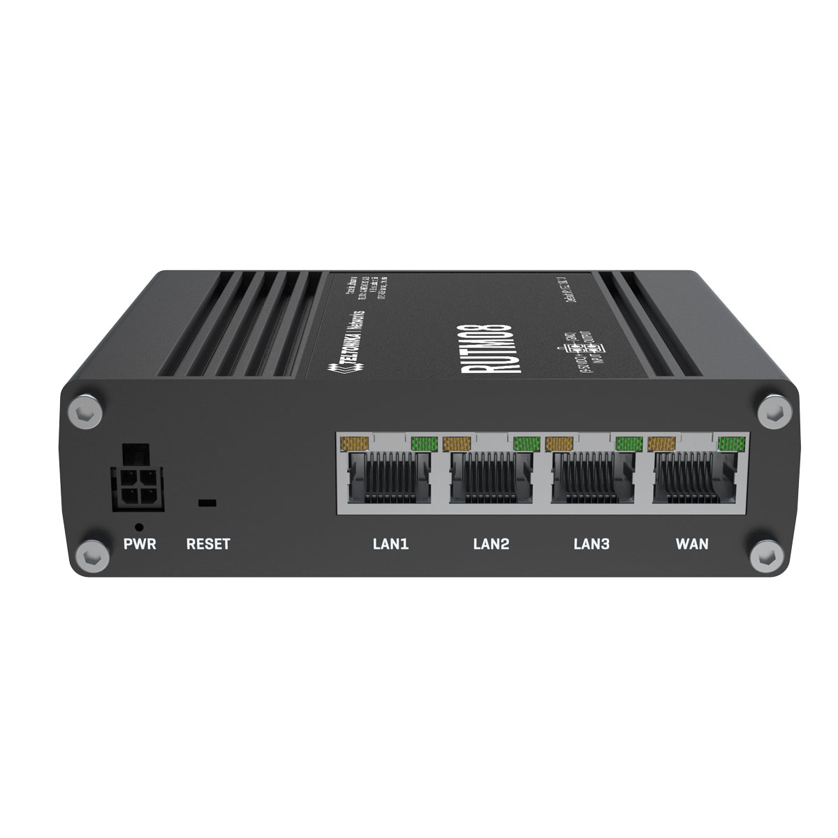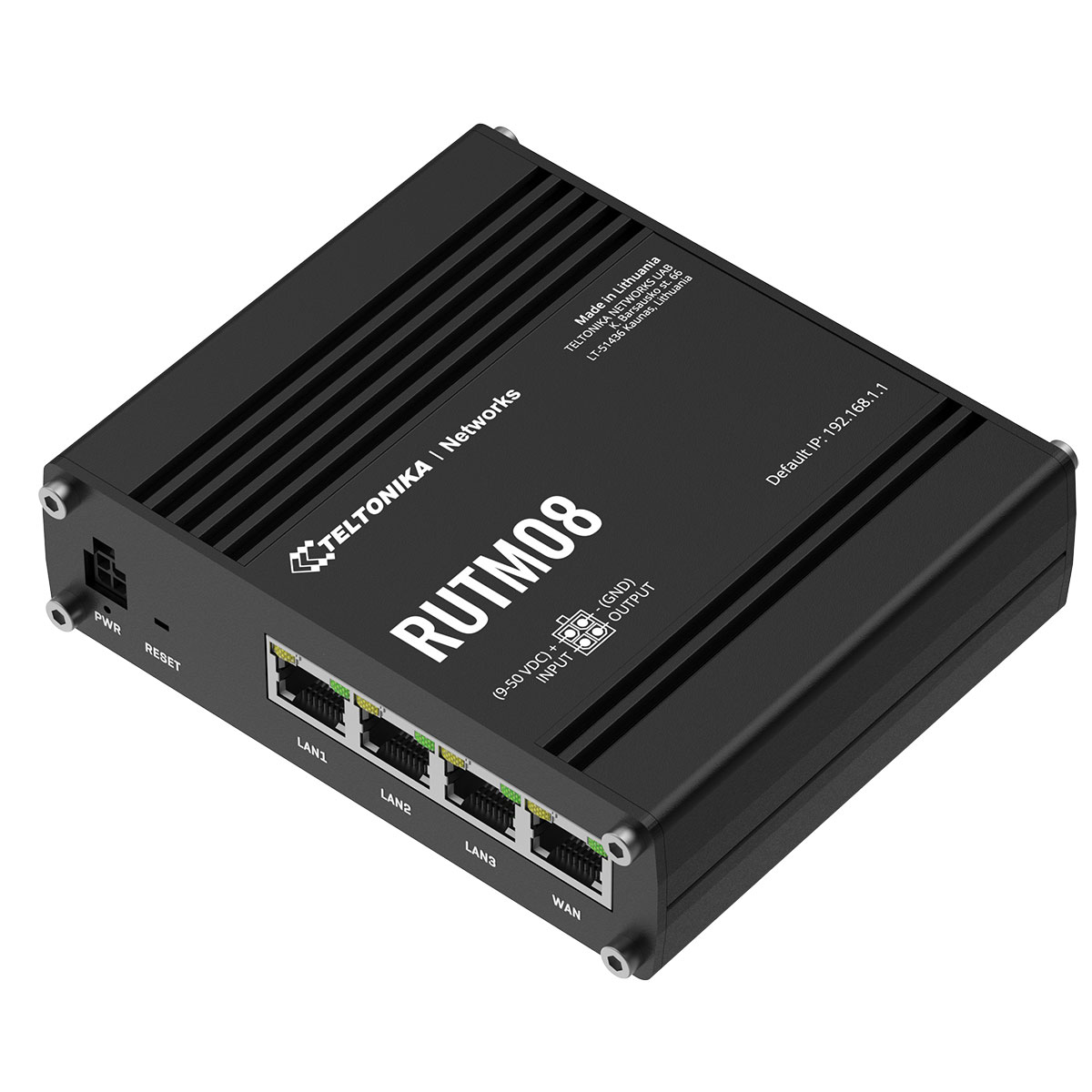 RUTM08 är en router tillverkad och utvecklad i EU som är en prispressad men kraftfull router utformad för att utgöra primär eller backup-anslutning till internet där stabil anslutning och hög driftsäkerhet önskas. Routern har fyra stycken Gigabit Ethernet-portar och en processor att backa upp det med. Av de fyra nätverksportarna är en port WAN-port och du använder de tre andra som LAN-portar.