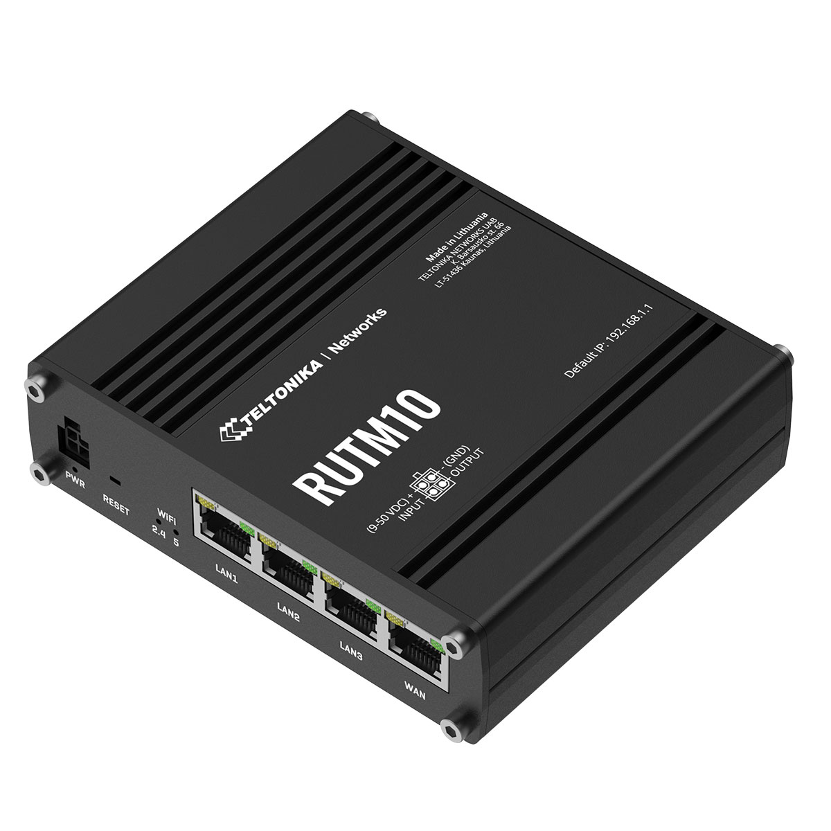 RUTM10 är en router helt i aluminium, framtagen för att passa i de flesta installationsmiljöer och sammanhang. Routern är designad för ett brett inspänningsområde (9-50 VDC).Routern spänningsmatas via det medföljande nätaggregatet eller via så kallad passiv PoE på LAN-port 1. Routern har också en I/O-port i spänningsmatningskontakten för övervakning av en sensor och styrning av en extern förbrukare, exempelvis kan denna utgång anslutas till ett relä.