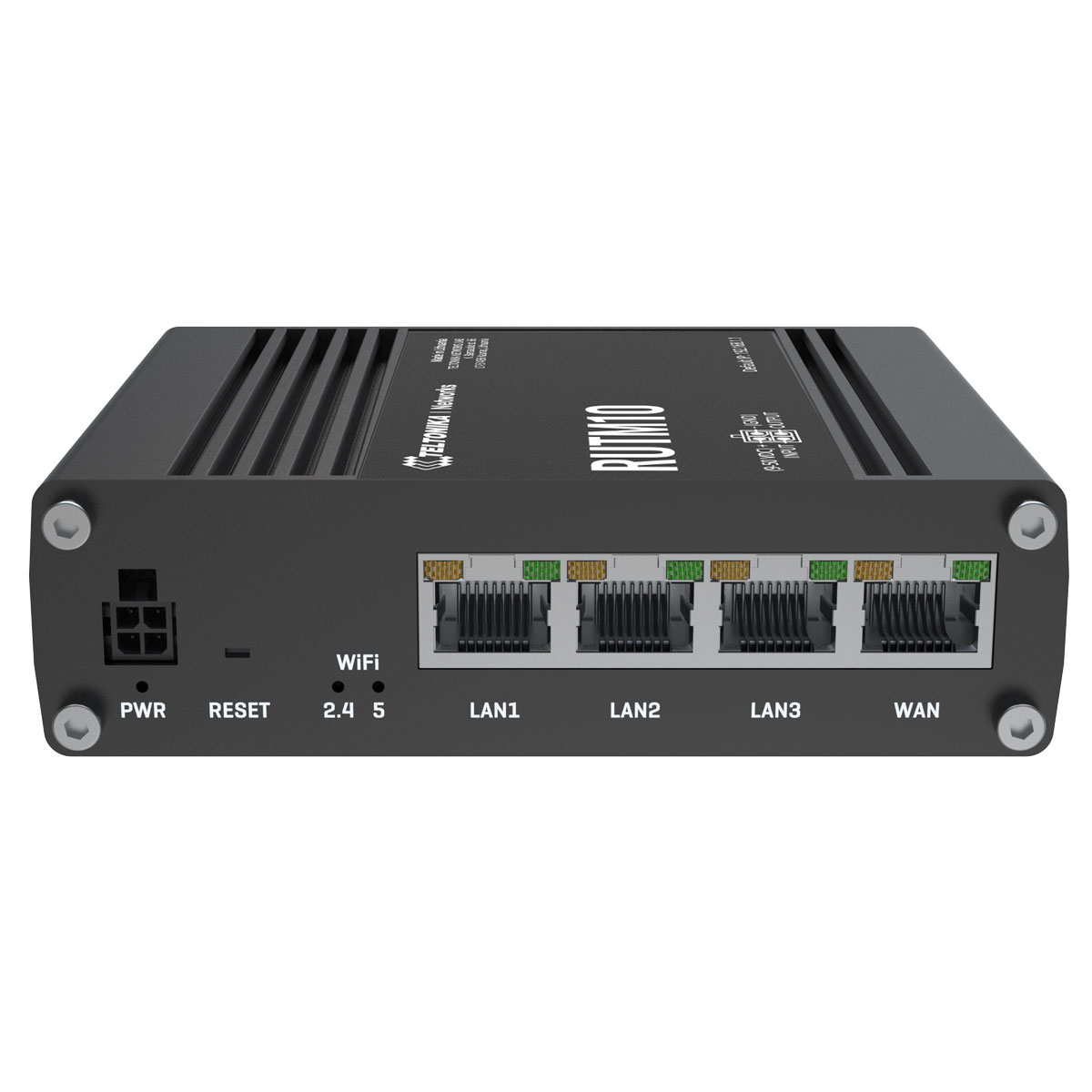 RUTM10 är en router tillverkad och utvecklad i EU, utformad för att utgöra primär eller backup-anslutning till internet där stabil anslutning och hög driftsäkerhet önskas.