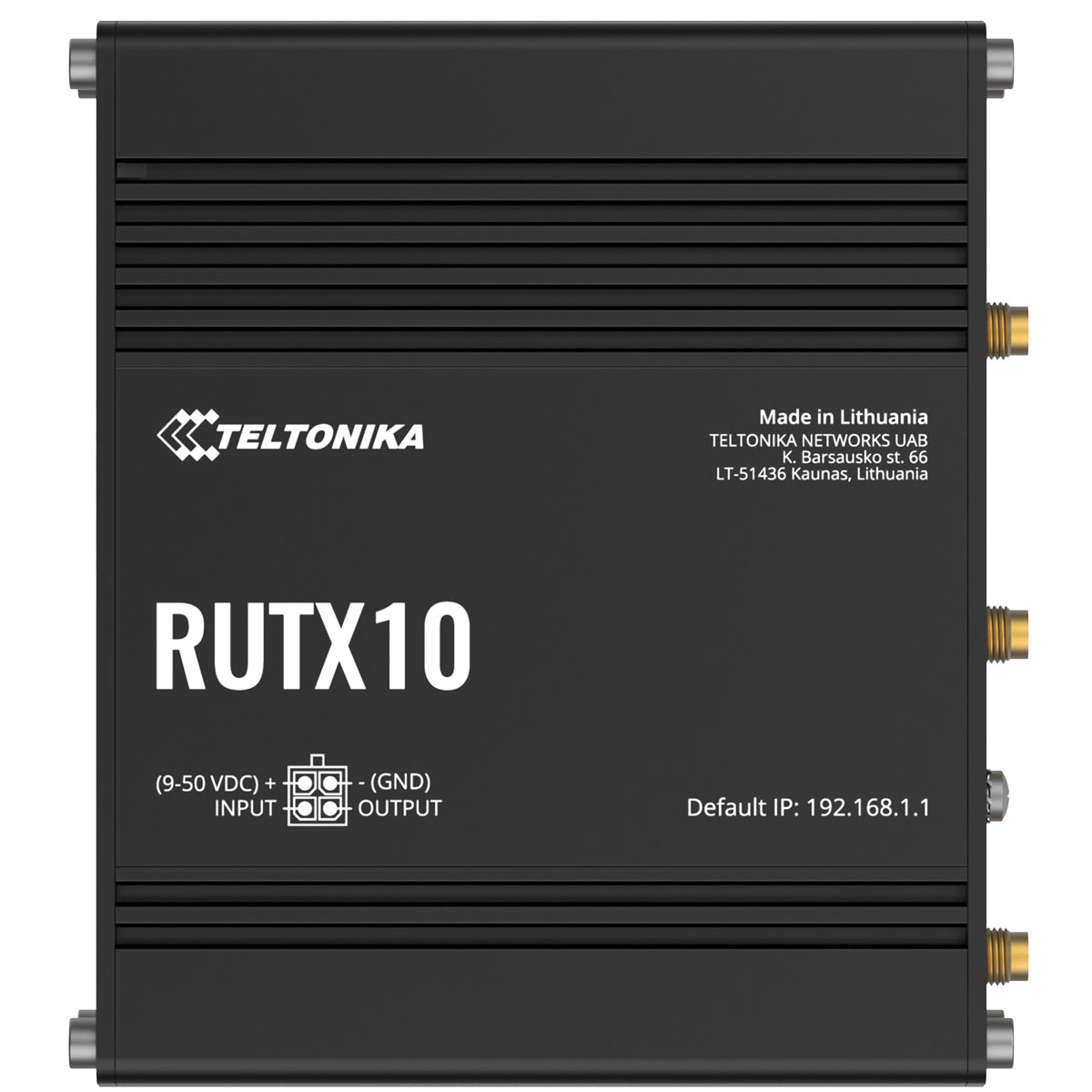 RUTX10 erbjuder säker uppkoppling och avancerade säkerhetsfunktioner. Den har stöd för olika VPN-uppkopplingar. Tack vare en avancerad brandväggsfunktion med stöd för olika typer av krypteringsprotokoll kan den användas i nätverk som har högt ställda säkerhetskrav. Routern baseras ett eget operativsystem, RutOS, som är ett OpenWrt-baserat Linux OS.