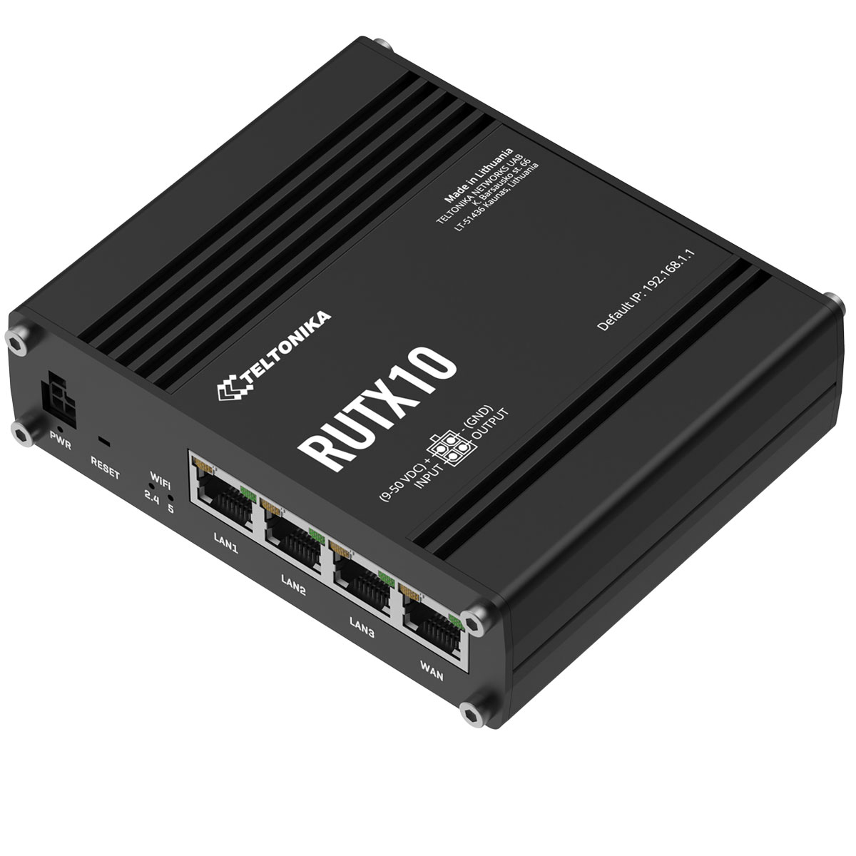 Teltonika RUTX10 är en robust router med gott om högpresterande anslutningar. Routern har fyra Gigabit Ethernet-portar, kraftfull wifi och Bluetooth. Routern har både en kraftfull processor och gott om internminne för avancerad routing. En router för säker uppkoppling via VPN-tjänster med avancerad brandvägg och stöd för fjärrsupport.