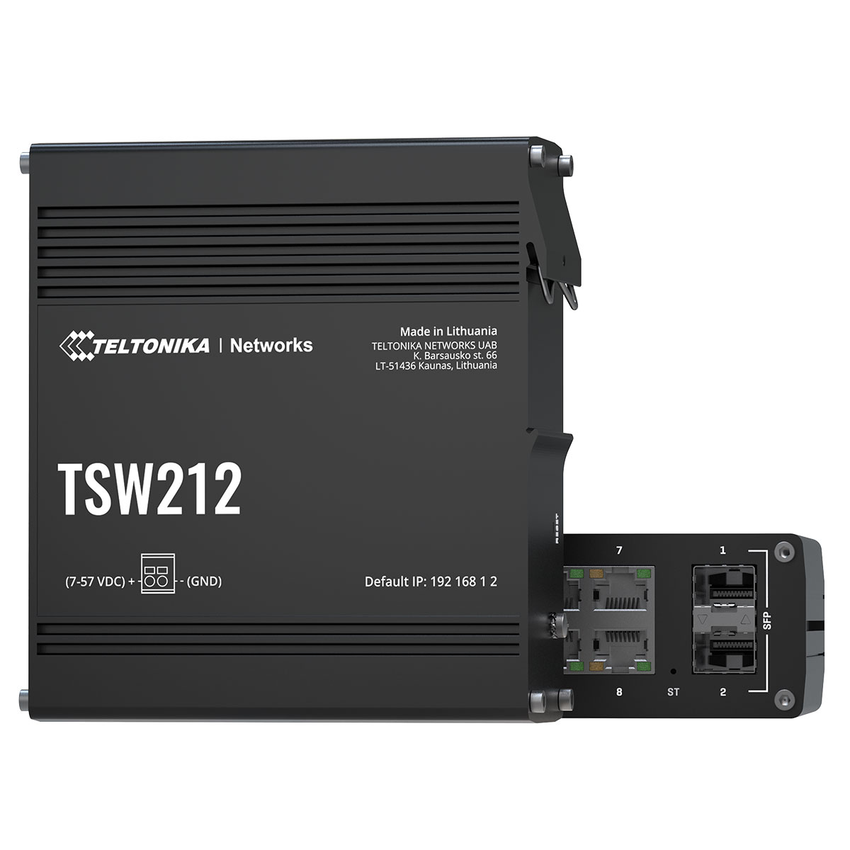 TSW212 är en hanterad (managed) nätverksswitch från Teltonika Networks. Denna switch är utformad för att erbjuda avancerad nätverkshantering med extra L3-funktioner som DHCPv6 och statisk IPv6-routing. Switchen har integrerat DIN-fäste.