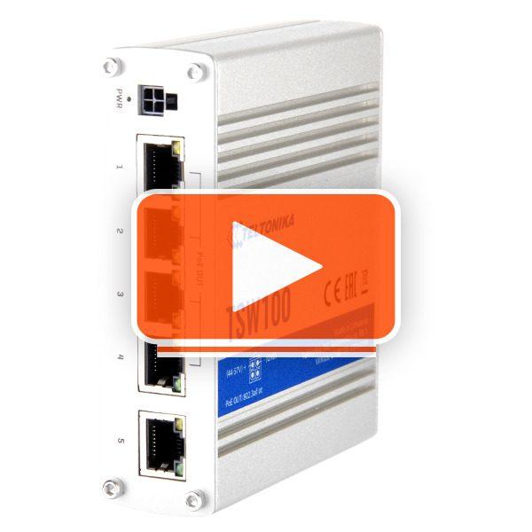 TSW100 är den första industriella unmanaged switchen från Teltonika Networks. Switchen är utrustad med fem Gigabit Ethernet-portar, varav fyra stöder IEEE802.3af och IEEE802.3at Power-over-Ethernet-standarder (PoE).Gigabit Ethernet