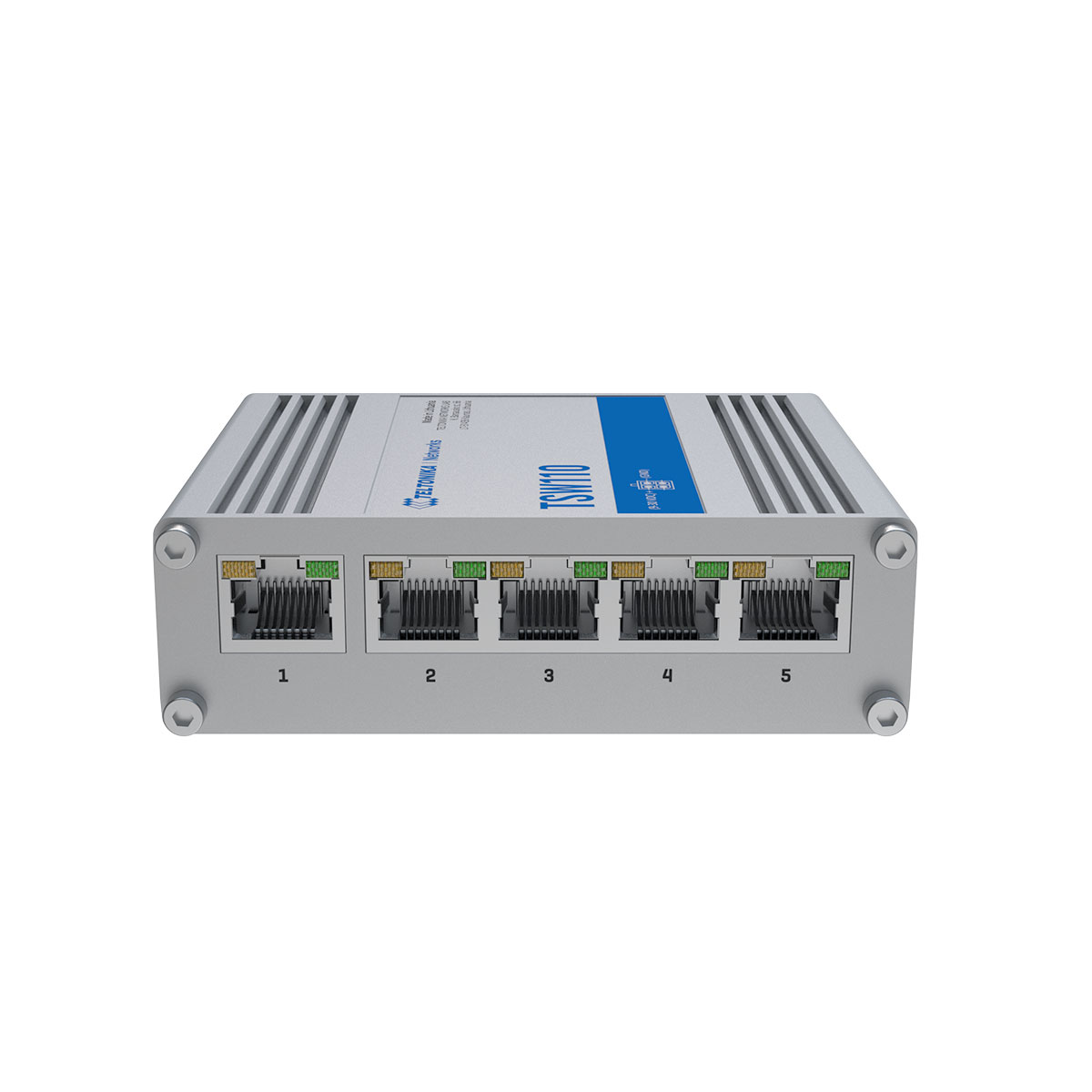 TSW110 är en industriell unmanaged switch från Teltonika Networks. TSW110 är utrustad med fem Gigabit Ethernet-portar.