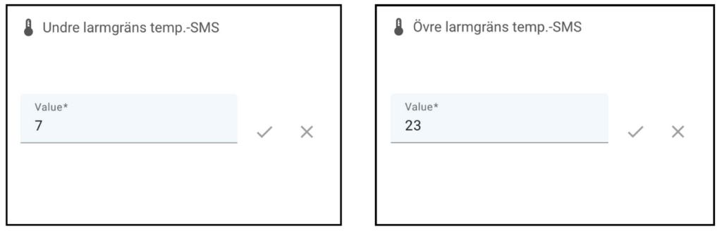 Som vi nämnde ovan är dessa gränser de som aktiverar ett larm i plattformen som syns som larm och som skickas via epost. Du kan alltså skriva in valfria värden och klicka på bocken för att acceptera inställningen.