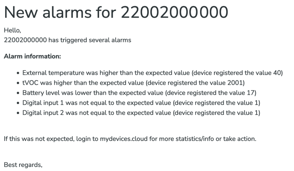 Temperatur och luftfuktighet visar den senaste mätningen från enheten som skickats. Enheten är inställd på att mäta med vissa intervall som kan ändras väl enheten är ute i fält. Kontakta support om du behöver hjälp med det.