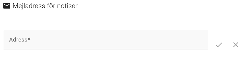 När du är inne i ovanstående vy så anger du den mailadress som du vill ha larm till. Först så måste du klicka i rutan för att acceptera larm via SMS. Se till höger.